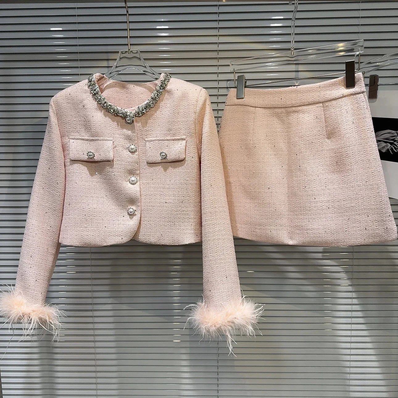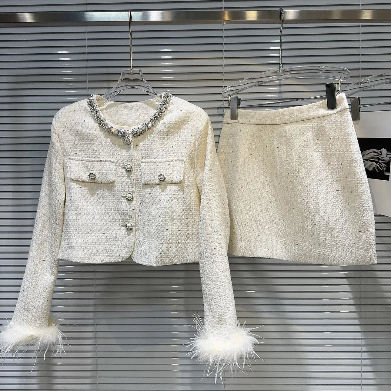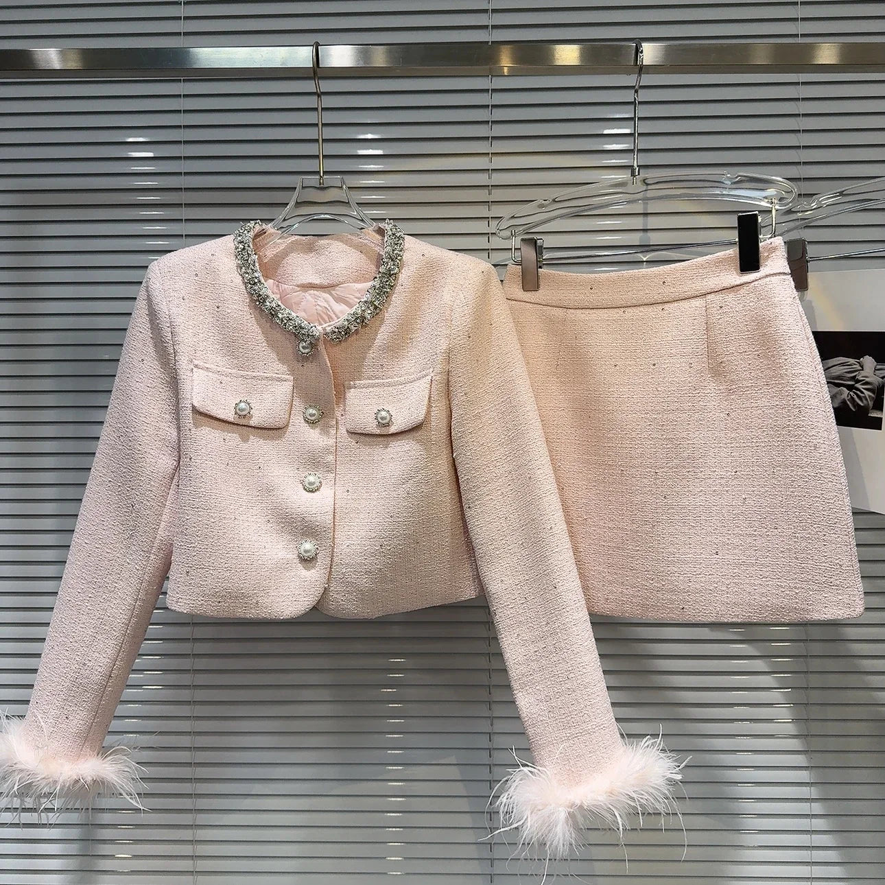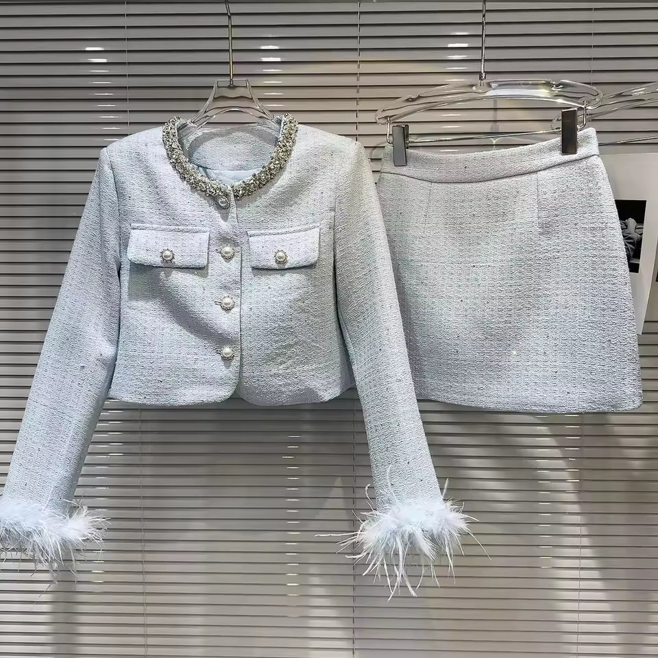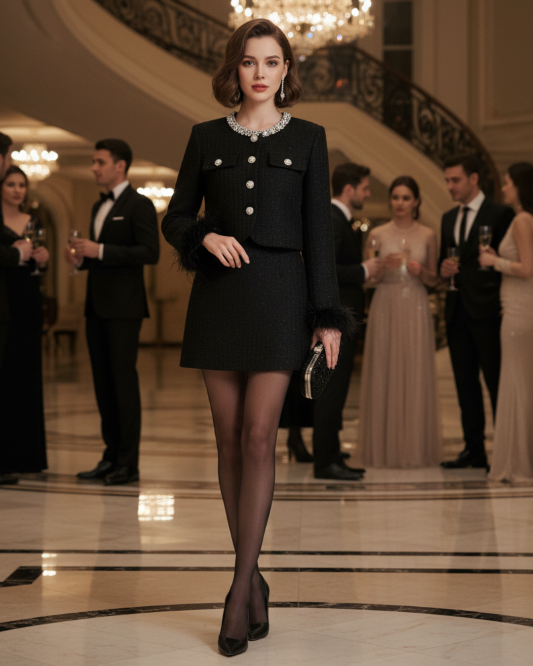 Coordinating skirt: Completes the look with a chic, feminine silhouette.