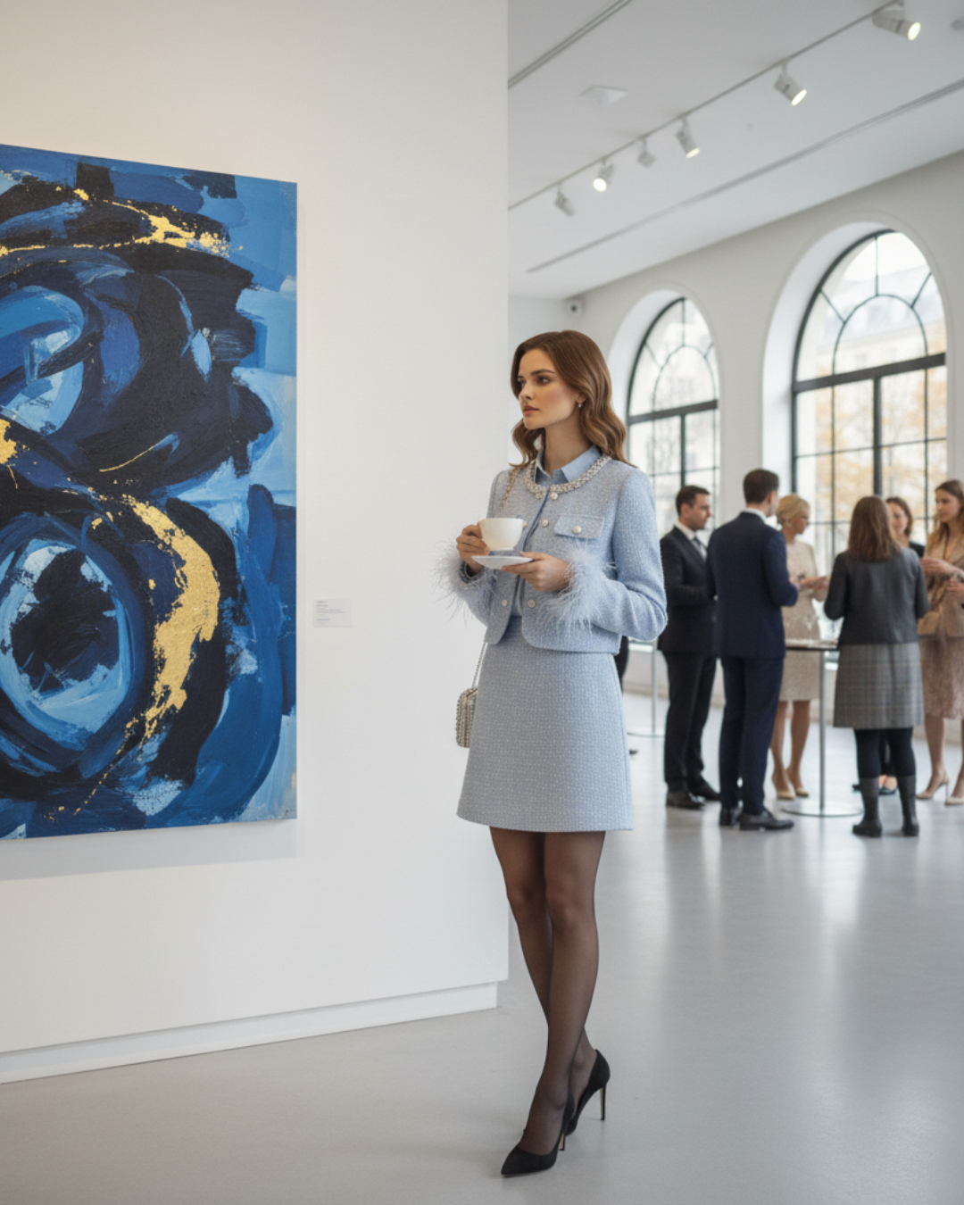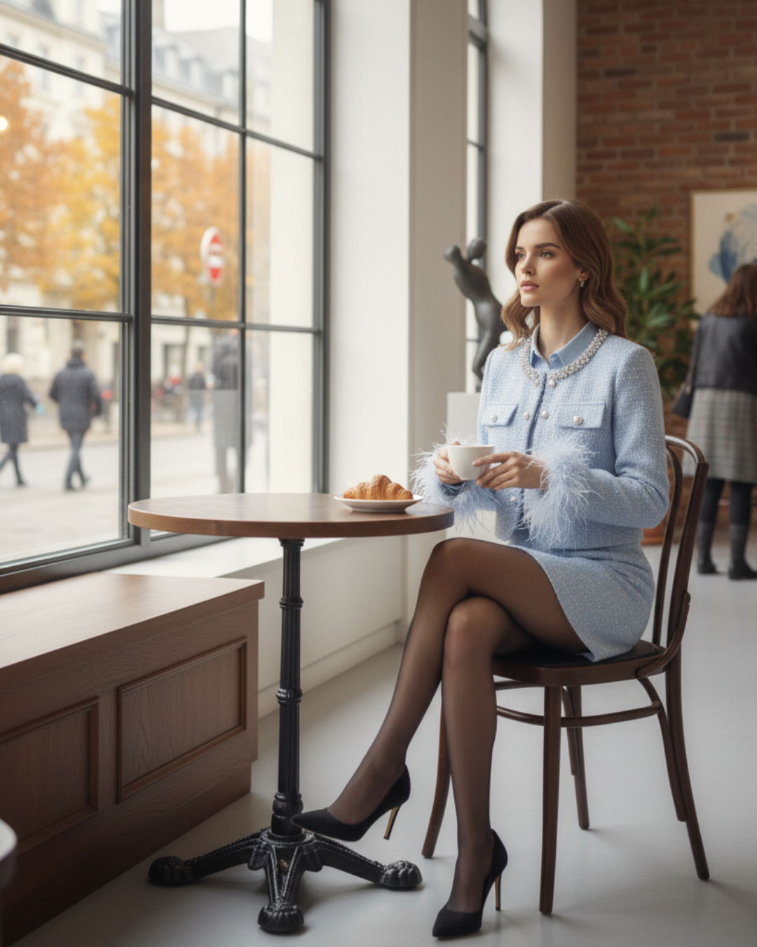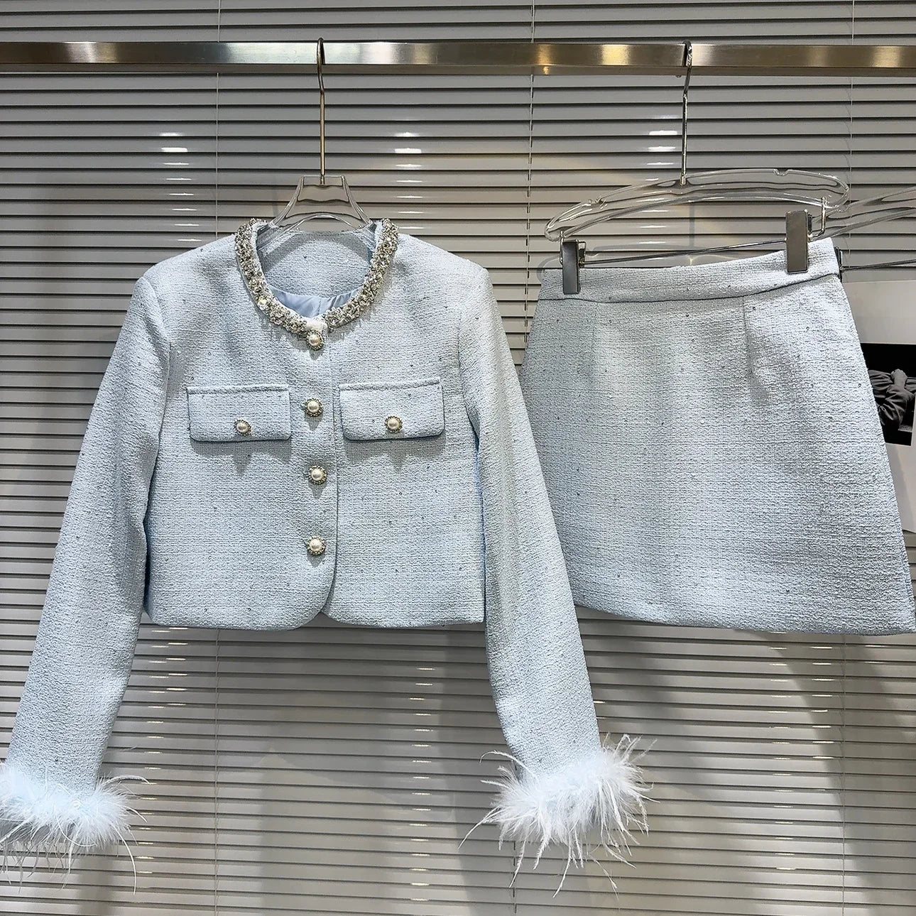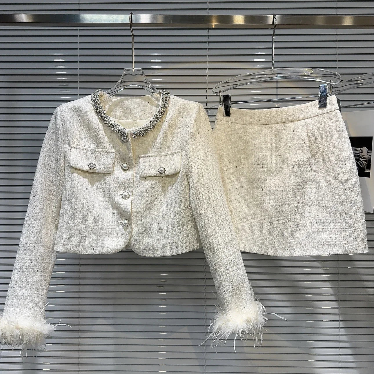 Coordinating skirt: Completes the look with a chic, feminine silhouette.