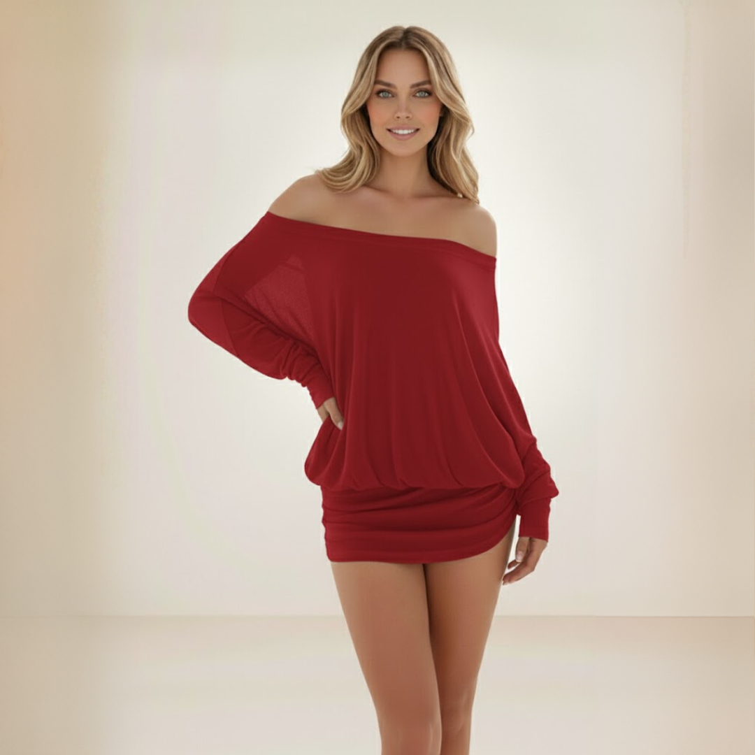 Elegant Slash Neck Design: Off-shoulder neckline for a chic, feminine look.