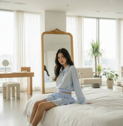 Choose your usual size for a balanced fit. If you prefer more space in the top or skirt, sizing up is recommended. The elastic waistband on the skirt provides flexibility and comfort during wear.