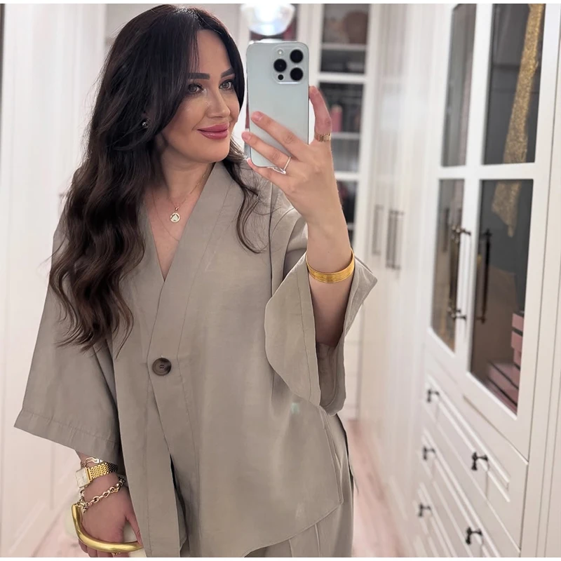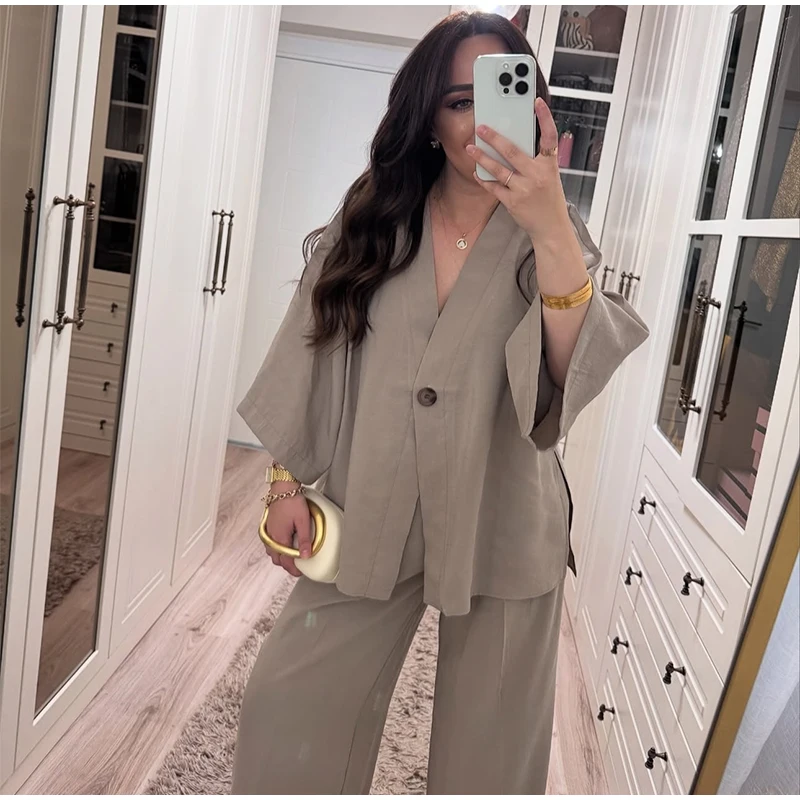 The Elina V-Neck Suit by Neesala Luxe combines tailored elegance with modern sophistication. With its sleek V-neck top, structured trousers, and premium fabric, this suit is the ultimate choice for women who want to exude confidence, power, and grace, whether at work or at an elegant event.