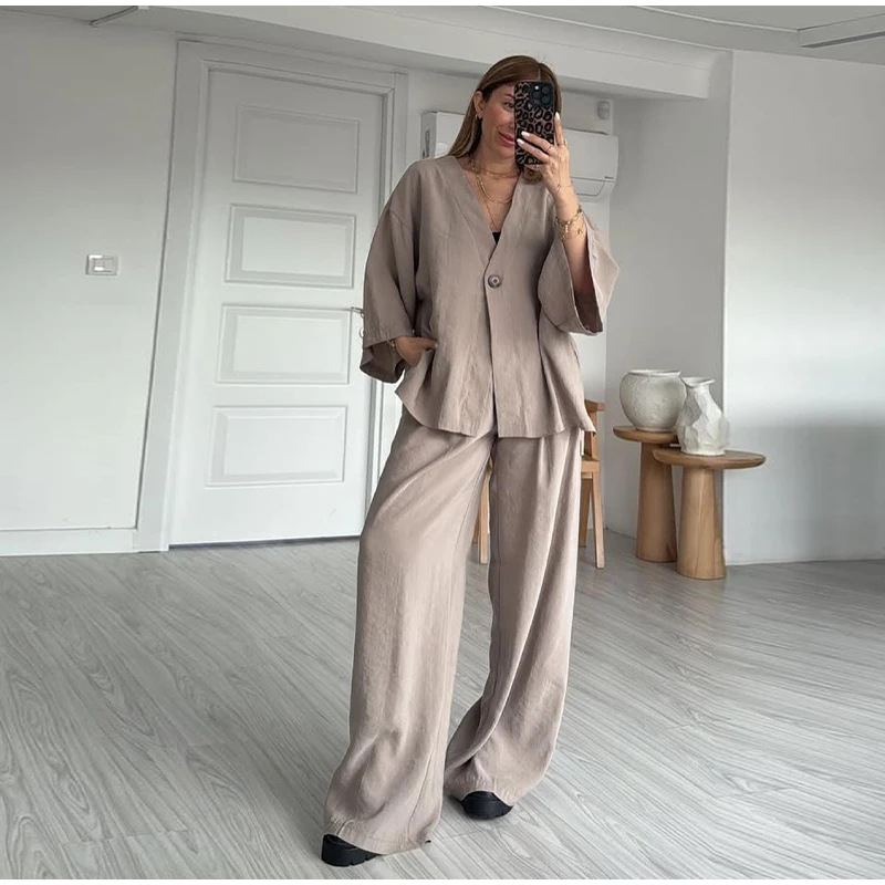 Channel your inner sophistication with The Elina V-Neck Suit by Neesala Luxe. Designed for the modern woman who loves a tailored, elegant look, this chic suit features a sharp V-neck top and matching trousers that combine to create a confident, polished appearance. Whether you're dressing for a business meeting, a formal event, or an upscale evening out, the Elina suit is your go-to for an effortlessly stylish ensemble that exudes power and grace.