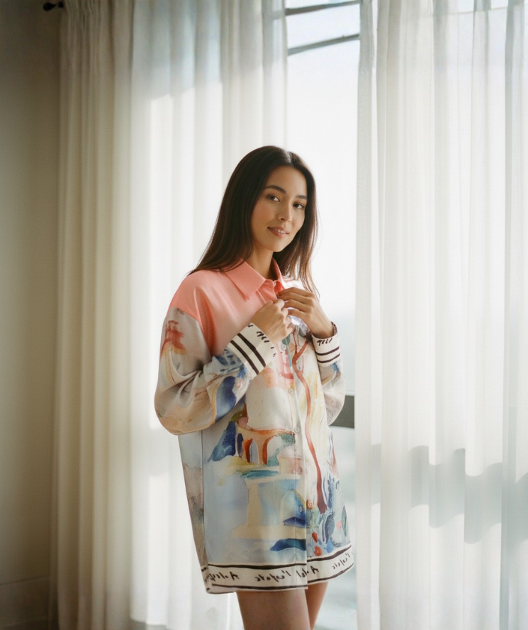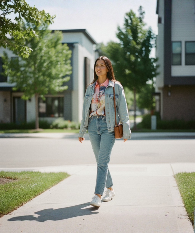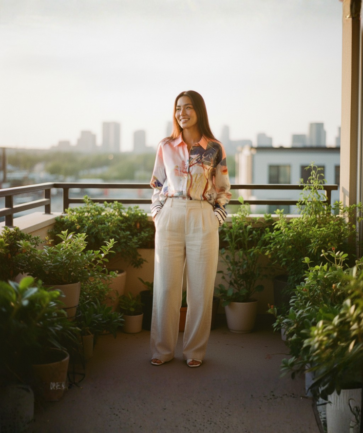 A modern, eye-catching print adds personality and flair, making the ensemble stand out effortlessly.