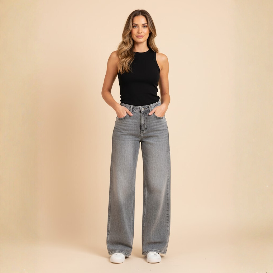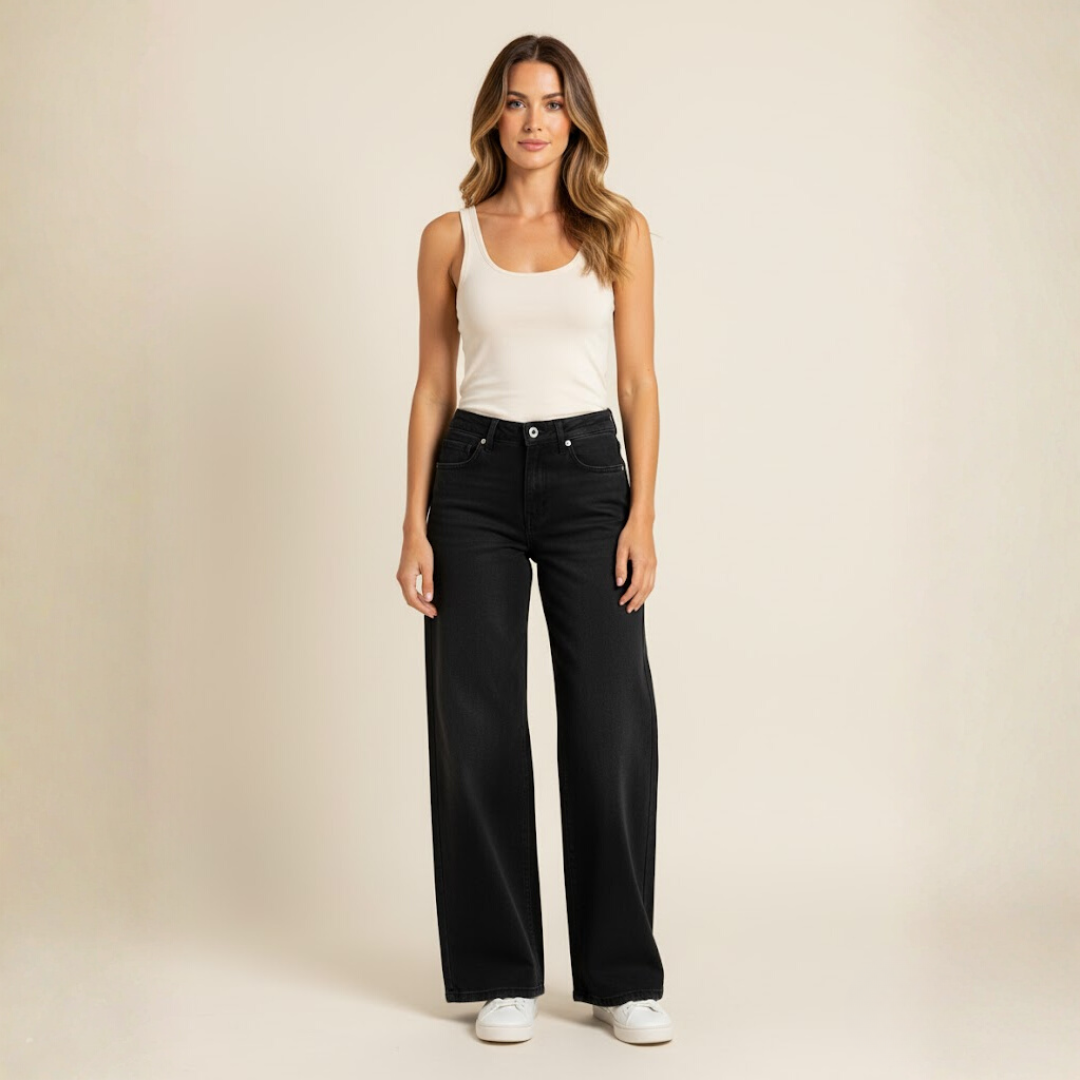 Step into timeless comfort with the Emilia High-Waisted Wide-Leg Jeans by Neesala Luxe, designed to give you that relaxed yet confident look. Crafted from a durable cotton-polyester blend, these jeans offer the perfect mix of softness and structure, keeping you stylish through every season. The high-rise fit flatters your waistline, while the wide-leg silhouette adds a touch of vintage charm that pairs effortlessly with any top.