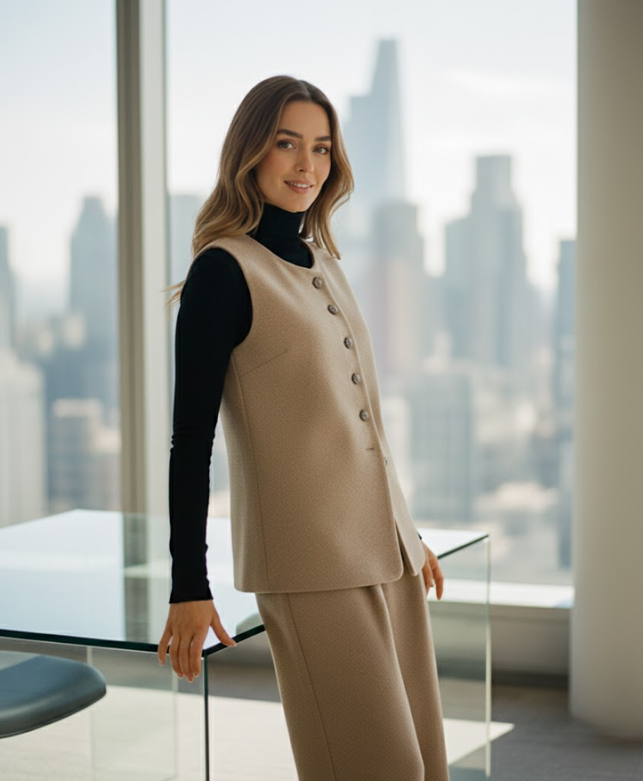 Structured Sleeveless Vest: Modern, polished, and easy to layer over fitted tops.