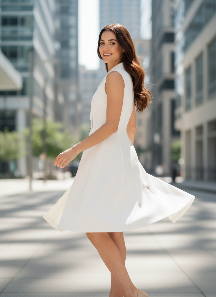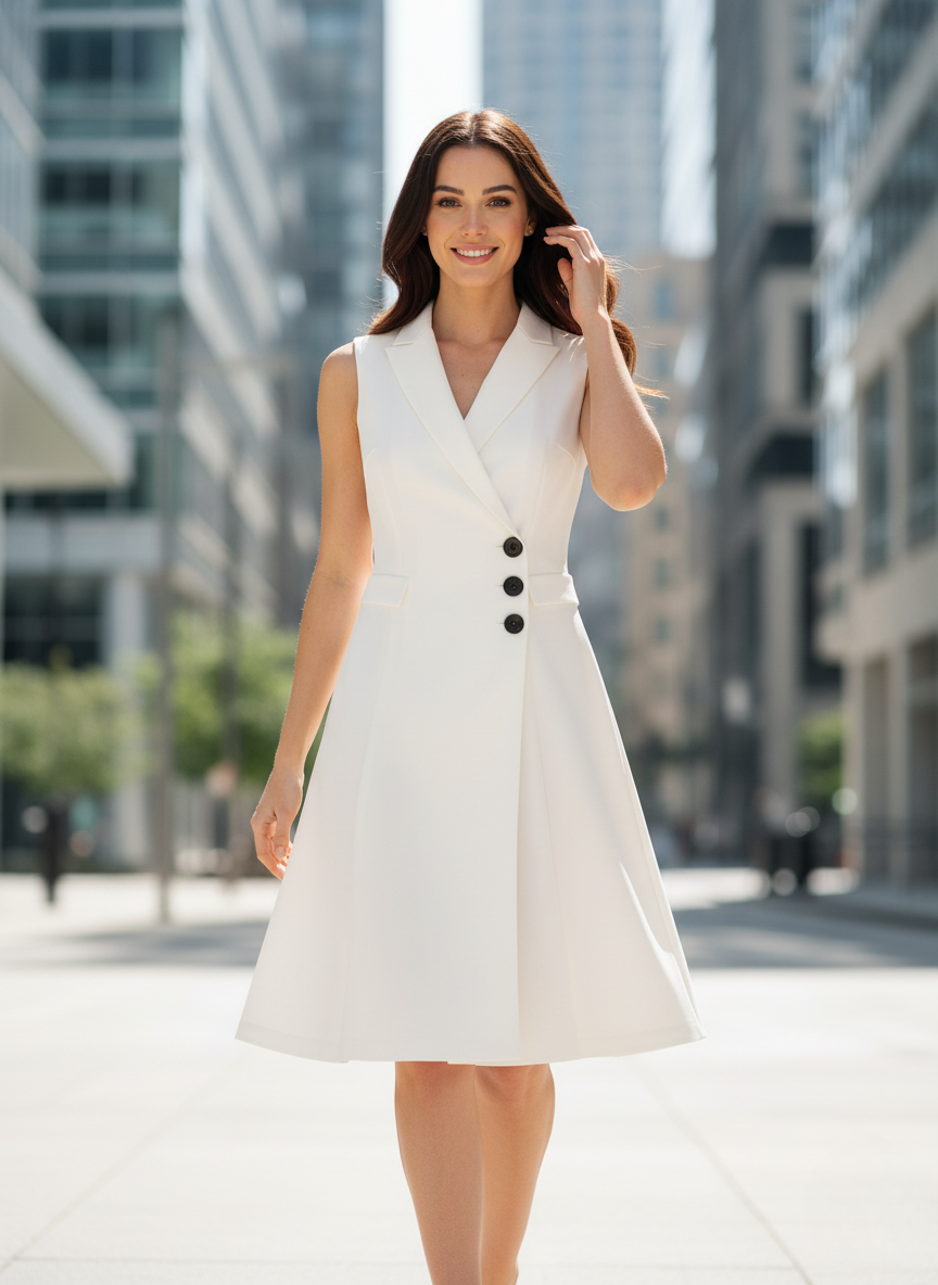 Sophisticated, modern, and exquisitely tailored — The Noora Suit Dress by Neesala Luxe brings together the structure of a tailored vest jacket with the femininity of a sleek, slimming dress. Designed for the woman who wants elegance with an edge, this sleeveless suit dress delivers a refined silhouette that transitions seamlessly from daytime professionalism to evening confidence.